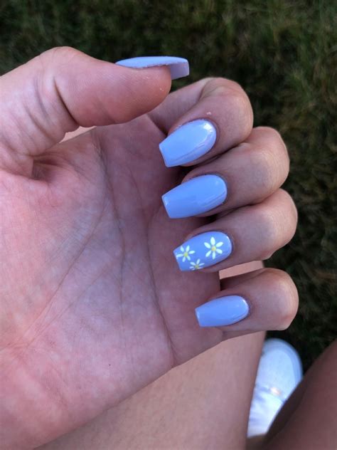 | Pastel Blue Base with White and Yellow Daisies | Meadow of delicate flowers on your nails |