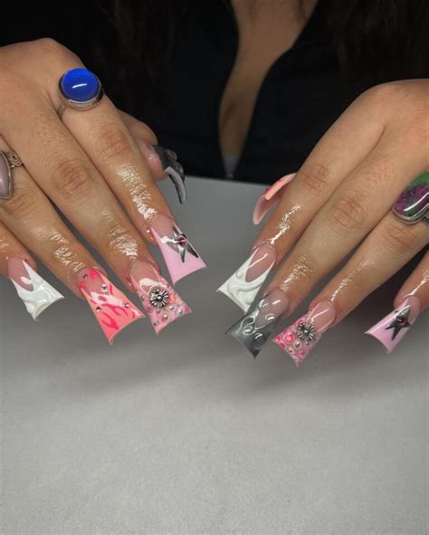 Y2K nails are a style of nail art that is inspired by the fashion and aesthetics of the late 1990s and early 2000s. They often feature bright colors, metallic accents, and playful designs.